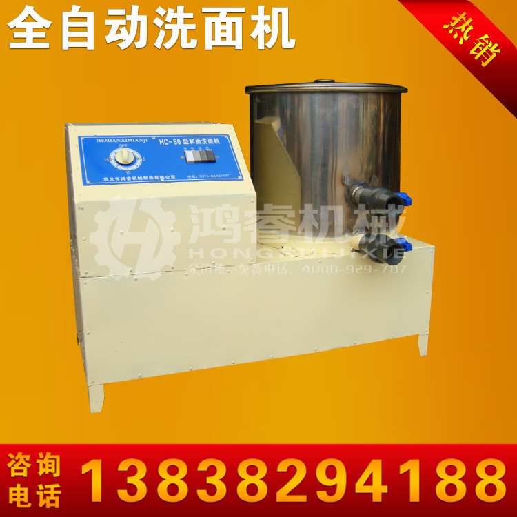 鴻睿牌洗面機效率高、洗面凈、效果好的特點,集和面洗面于一體,與人工洗面比,鴻睿洗面機大大提高了工作效率,減輕了人工繁重的體力勞動。結構合理,造型美觀、易操作、面斗可翻,排水方便,一次過濾,是搞涼皮、搟面皮制作個體戶理想的選擇。